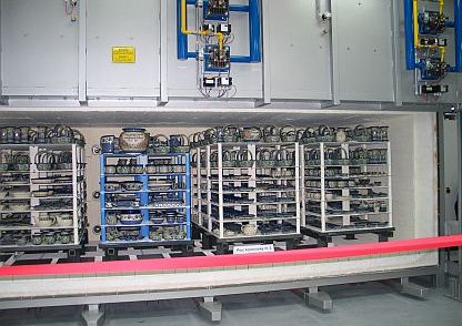 Da keine Gleise bzw. Fahrbühnen für die Brennwagen benötigt werden, bleibt der Hallenboden im Bereich des Ofens voll befahrbar. Neben den optimalen Bedingungen für den Transport des Brenngutes wird bei einer definierten Ofen- und Besatzgeometrie ein hervorragender Temperaturausgleich erreicht. Voraussetzung hierfür sind natürlich auch die Anordnung/Aufteilung der Brenngasse und Brenner, die Abgasführung. usw.